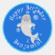 Cute happy narwhal bubbles cartoon illustration classic round sticker