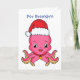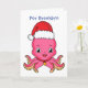 This cute happy octopus is ready for Christmas with his Santa hat! Drawn in fun cartoon style.