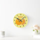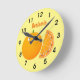 Cute happy orange citrus fruit cartoon round clock