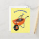 Cute happy orange wheelbarrow cartoon illustration postcard