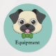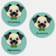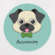 An illustration of a cute cartoon happy pug dog with green papillon for bestfriend and pet day. This adorable animal design is a gift idea for puppy lovers and dog with breed lovers.