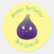 Cute happy purple fig fruit cartoon classic round sticker