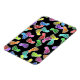 Colourful illustration of happy smiling feet emoticons set against a black background. Image available on various gifts and products.