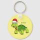 Cute happy tortoise wearing Santa hat Keychain