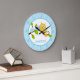 Super cute owl clock featuring a blue and yellow clock with a light blue dot border.