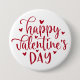 Spread good cheer this Valentine's season with this cute and cheerful button that says 'Happy Valentine's Day' in a fun decorative red script with heart details.