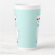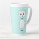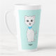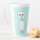 Cute white happy cat cartoon on light blue mug. Ideal for everyone.