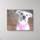 This canvas features Olive, a beautiful Labrador mix wearing a pretty pink scarf.