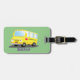 Étiquette À Bagage Caricature du bus scolaire jaune joyeux