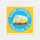 This happy yellow school bus is just waiting to pick up passengers! Drawn in cute cartoon illustration style for a fun birthday!.