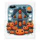 Cute Haunted House Halloween Pumpkins Ghosts & Bat Photo Print