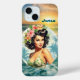 Cute Hawaii lady add name beach retro iPhone 15 Case