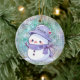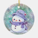 Cute Heart Snow Man Pastel Pattern Name Ceramic Ornament