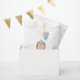 She’s little and she’s definitely cute. This little hedgehog birthday party theme is just sweet. Theme features a woodland hedgehog wearing a pink and teal party hat, she is holding three bright balloons and swirled candy. Check out the matching stationery and gifts.
