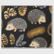 Cute Hedgehog Colorful Wrapping Paper . Hedgehog standing in middle of paper with gold and silver leaves all around. Cut little wildlife and nature wrapping sheets of paper. Childrens paper for birthday or other.