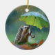 Cute hedgehog holding a leaf umbrella ceramic ornament