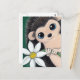 Cute whimsical hedgehog postcard. Features a painting of a blue-eyed hedgehog holding a white daisy-like flower. Created from original artwork © Lisa Marie Robinson. All Rights Reserved.