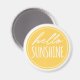 Brighten up the day with this cute magnet featuring "hello sunshine" handwritten-style typography in white on a yellow and white background.