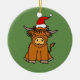 Cute Highland Cow in Santa hat Christmas Ceramic Ornament