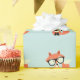 Adorable vector illustration of a cute little red fox wearing an oversized pair of glasses.