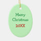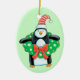 This cute Christmas ornament features an image of a cartoon penguin in a green Christmas wreath with a red bow. The image is placed on a light Holiday green background, with customizable text on the opposite side that currently says Merry Christmas and the year in red and green. You may easily make it say whatever you'd like. Festive, unique, and colourful! Kids will love it!