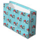 This gift bag with cute shark and Christmas presents is perfect for packing your gift for someone who loves sharks. The shark is wearing a Santa hat. This shark design is one of my first designs and one of my favorites. The design is customizable.