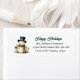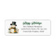 The design on these address labels is a cute, smiling snowman with a black top hat and a cheery yellow and blue plaid scarf. He is surrounded by colorful foliage and birds.