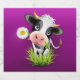 Cute Holstein cow in grass over purple