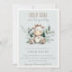 Cute Holy Cow Foliage Pastel Blue Baby Shower Invitation