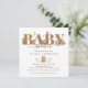 Cute baby shower featuring adorable water colour teddy bears with the word BABY in brown and a bee hive and tiny bees. Flip our design over to view our coordinating back.