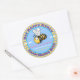 Cute honey bee apairy blue cartoon illustration classic round sticker