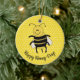 The ornament says Happy Honey Days, a pun, instead of Happy Holidays. There is room on the back for your names and the year or other message. You can change the sample text to your own text to personalize. You can also change the font style or size to customize. You may need to adjust the size or placement of the words to fit. Click the customize or personalize button.