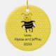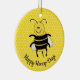 This fun customizable ceramic Christmas ornament has an image of a cute cartoon honeybee on a honeycomb background.