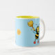 Cute Honey Bee with Heart & Monogram on Light Blue Two-Tone Coffee Mug