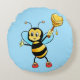 Cute Honey Bumble Bee with Heart on Light Blue Round Pillow
