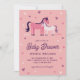 Cute pink, purple and white horses are created into a pattern to make the perfect equestrian baby shower invitation for a girl and horse lover. Background colour is easy to customize!
