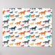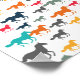 Unique running horse background pattern. Choose your own background colour to customize! Horses of varying sizes with colours including: turquoise, orange, yellow, grey, olive green, red and navy blue.