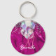 Cute hot pink faux silver glitter balloon monogram keychain
