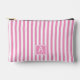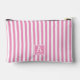 Cute Hot Rose Pink Stripes Monogrammed Initials Accessory Pouch