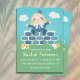 What a fun way to honour a mommy-to-be than to give her a baby shower with the theme of Humpty Dumpty. A classic, adorable and familiar Mother Goose nursery rhyme that we all love and adore. This design features a Humpty Dumpty character sitting on a short wall with flowers and grass. He has rosy cheeks and is wearing a suit with a big bow tie. The background has floating clouds. The colours are yellow, blue and green. Customize to make your own.