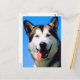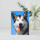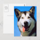 This post card has an adorable colour photo of a husky dog panting with his tongue hanging out.