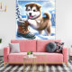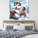 Cute Husky Puppy Playing in Snowy Winter Landscape Canvas Print