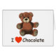 A general-purpose greeting card for use by chocoholics. Features a teddy bear and the slogan "I Heart (Love) Chocolate."