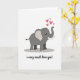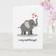 This greeting card features a cute, stylized elephant in a soft medium-gray color, standing on a light gray oval shadow against a plain white background. The elephant has big black eyes with tiny white highlights, giving it a sweet, gentle expression. Its trunk curls up as if waving hello, and small white tusks peek out on either side. Above its head, several pink hearts float upward in different sizes, adding a clear message of love and affection ❤️. Near the bottom of the card, the text reads “i-vory much love you!” as a fun pun. The lettering looks like simple, lowercase block text in dark gray, placed below the elephant and centered on the page 💌. Send it to someone special and share a little extra love this Valentine’s Day 🍫.