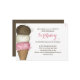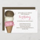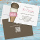 This design features a cute watercolor ice cream birthday, a stylish trendy calligraphy script, QR code website online URL, Facebook social media event page, a fun festive whimsical celebration, an ice cream scoop waffle cone, a simple minimalist minimal design, a summer birthday celebrate party, a pink white chocolate brown, a Neapolitan flavour ice cream con