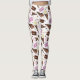 These leggings feature a pattern of yummy ice cream cones, ice pops, and ice cream bars. Colours used include violet pink and brown. Everything is placed on a white background. Cute, and perfect for summer!