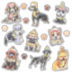 Stick these cute dog vinyl stickers everywhere, from water bottles to laptops to car windows. This sticker sheet includes nine different dog breeds, each dressed in festive hat and scarf. Seven dog paw print stickers bring the total number of vinyl stickers in this collection to 16.