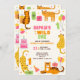 This design features illustrated tigers, leopards, among colourful balloons, birthday gifts,s and party hats paired with modern typography. All text on this birthday invitation is editable. Find matching items in my shop.