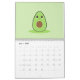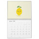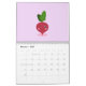 A 12 months Calendar with cute illustrations in Kawaii Style: hippo, lemon, radish, unicorn, bunny, frog, avocado, tomato, pear, apple, pumpkin, mushroom, Christmas tree and cow. Perfect for a funny year!