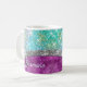Cute iridescent purple teal faux glitter monogram coffee mug